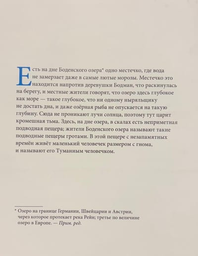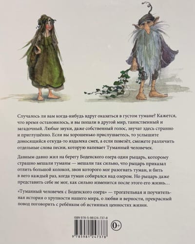 Have you ever suddenly found yourself in a thick fog? It seems as if time has stood still, and you've entered another world, mysterious and enigmatic. Any sounds, even your own voice, sound strange and muffled. If you listen carefully, you'll hear laughter coming from somewhere far away, and if you're lucky, you might even be able to discern individual words of the song hummed by the Fog Man. Once upon a time, there lived a knight on the shores of Lake Constance who was terribly bothered by the fog—so much so that he ordered a large bell to be cast, the ringing of which could disperse the fog, and to be rung whenever fog gathered over the lake. But the knight couldn't even imagine how much his life would change after this... "The Fog Man of Lake Constance" is a touching and instructive story about the fragility of our world, about love and loyalty, a wonderful opportunity to talk to a child about the true values in life.