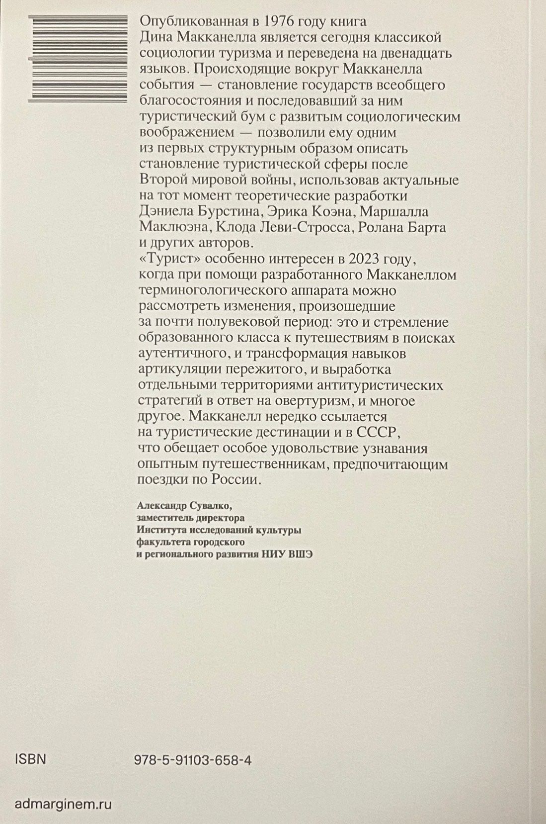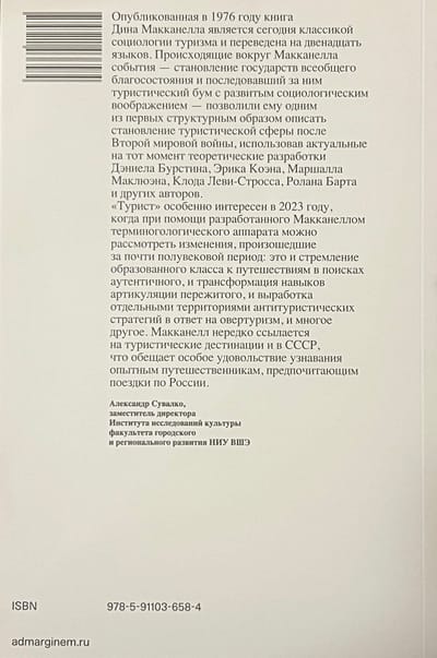 In his work, Dean McCanell, professor of landscape architecture at the University of California, Davis, explores notions of authenticity, elitism, and popular culture related to the construction of social reality around the phenomenon of tourism that took over the Western world in the second half of the twentieth century. McCanell takes an interest in the relationship between individual behavior and social relations, studying "the behavior of tourists and the places they travel to better understand the hidden structures and meanings of life at the end of the modern era." The idea of The Tourist originated and developed within sociology, but like the phenomenon it studies, the book has left its native discipline and spread far beyond its boundaries. The book was first published in 1976 and, together with Empty Meeting Grounds: The Tourist Papers (1992), a collection of essays that established McCanell's reputation as an outstanding researcher on tourism, remains invaluable to scholars and interested observers alike.