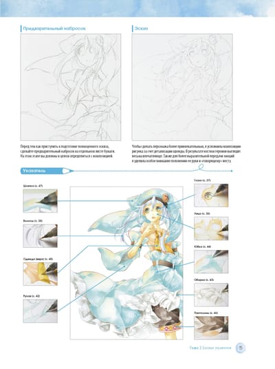 We present a unique edition: a guide to drawing with watercolor pencils in the author's technique + 7 step-by-step projects-illustrations in the style of manga! In this amazing book, the famous Japanese master Kojima Kon will not only share with the reader the magnificent stories from manga with step-by-step descriptions of each stage of drawing, but also introduce the most interesting technique of painting with watercolor pencils "in the wet way", using a water brush. At the beginning of the book you will find a course for beginner illustrators: an overview of watercolor pencils and other supplies, color inpainting and basic painting techniques. The author then moves on to more advanced stages: drawing characters, backgrounds, textures, and a variety of shapes. Each step is illustrated with a full-fledged illustration and broken down into many step-by-step photos and instructions. At the end of the book you will find bonuses: tips on combining different drawing supplies and processing images in a graphic editor, as well as secrets that the author generously shares with readers. With this book you will become a real manga illustrator!