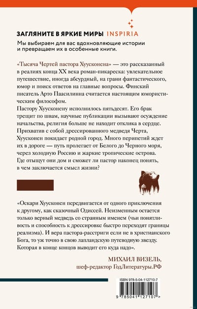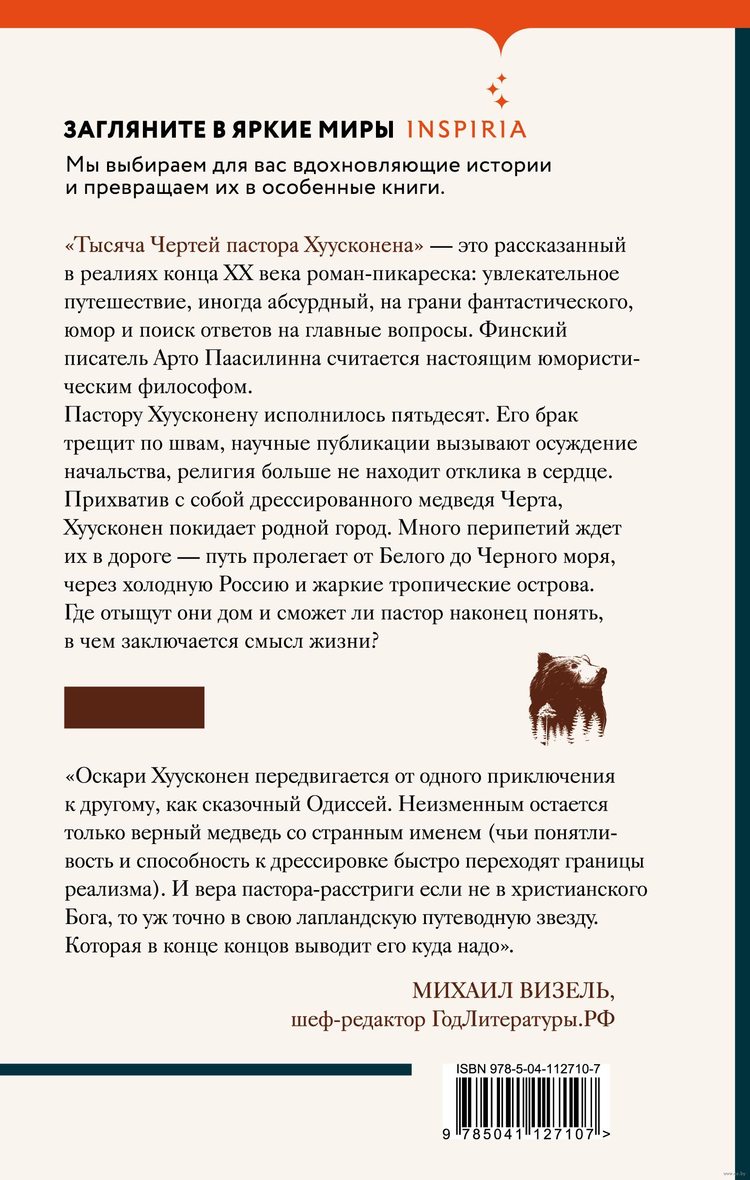 "Pastor Huuskonen's Thousand Devils" is a picaresque novel told in the realities of the late 20th century: a fascinating journey, sometimes absurd, on the verge of the fantastic, humor and a search for answers to major questions. Finnish writer Arto Paasilinna is considered a true humorous philosopher.
