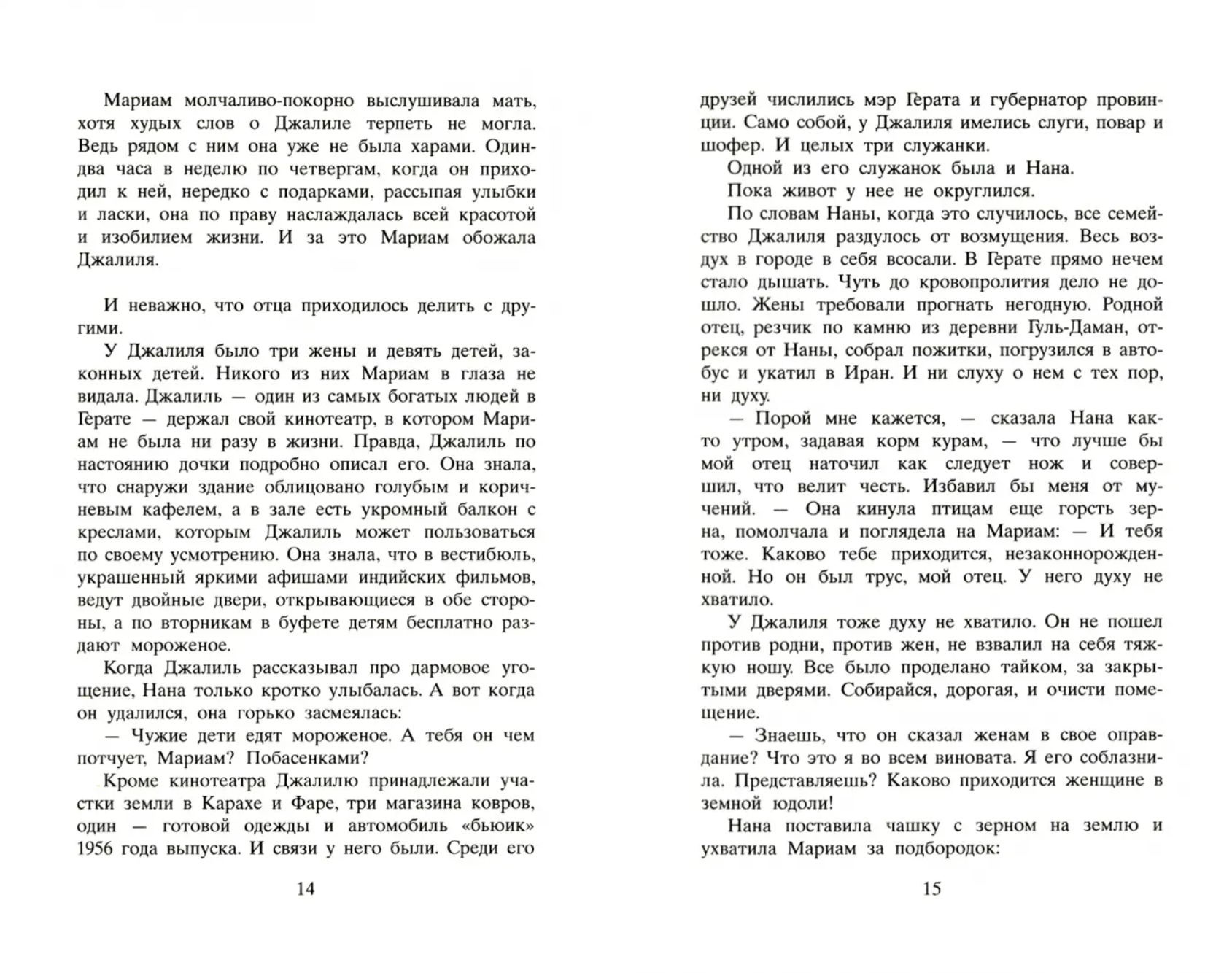 At the center of the novel are two women who became victims of the upheavals that destroyed peaceful Afghanistan. Mariam is the illegitimate daughter of a rich businessman, who has known from childhood what misfortune is, and from an early age felt her own doom. Leila, on the contrary, is a beloved daughter in a close-knit family, dreaming of an interesting and wonderful life. There is nothing in common between them, they live in different worlds, which would not have been destined to intersect if not for the fiery squall of war. From now on, Leila and Mariam are connected by the closest ties, and they themselves do not know who they are - enemies, friends or sisters. But alone they will not survive in a maddened world, they will not withstand the medieval despotism and cruelty that flooded the streets and houses of the once cozy city. Together they will go through suffering, together they will catch unexpected grains of joy, together they will dream of happiness, to which they will one day try to break through.