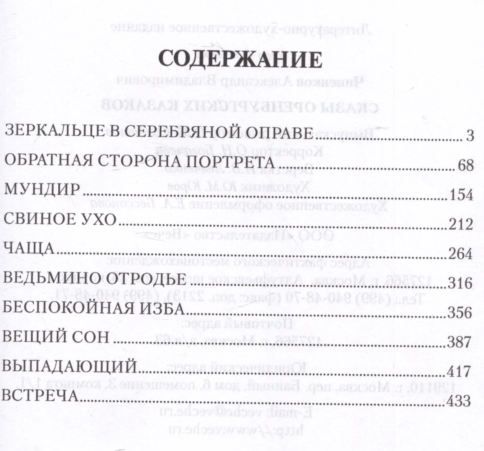 The new book by the famous Orenburg writer Alexander Chinenkov includes mystical stories and tales. These stories, generous in invention, with all the power and diversity of folk art, draw you into the mysterious world of Russian demonology, into a mysterious country inhabited by sorcerers, mermaids and other magical inhabitants.
