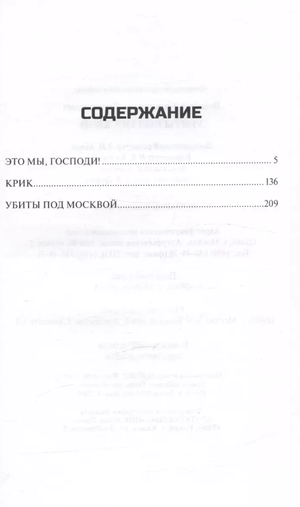 The book by the wonderful Russian writer and front-line soldier Konstantin Dmitrievich Vorobyov includes his best works: "It's Us, Lord!", "The Scream", "Killed Near Moscow". Dedicated to the events of the first months of the war, these stories amaze the imagination of readers with the cruel "trench" truth, telling about the heroism and courage of ordinary soldiers and officers - yesterday's students and schoolchildren.