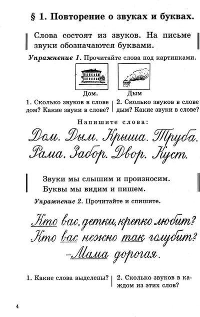 Russian language textbook for the first grade of primary school
