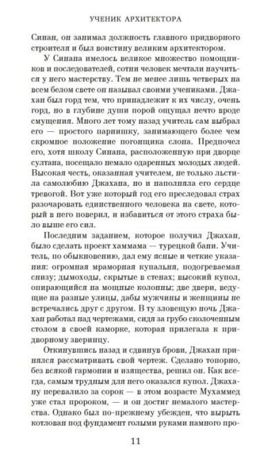 16th century. Ottoman Empire. The era of Suleiman the Magnificent. By a twist of fate, twelve-year-old Jahan and his ward, a white elephant named Chota, find themselves in Istanbul, at the court of the powerful sultan. Here, Jahan is destined to experience many amazing adventures, make friends, find love, and become the apprentice of the outstanding architect Sinan. This is a remarkable story of creative freedom, the clash between science and fanaticism, and the clash of love and loyalty with brute force.