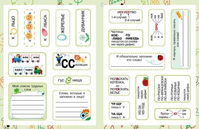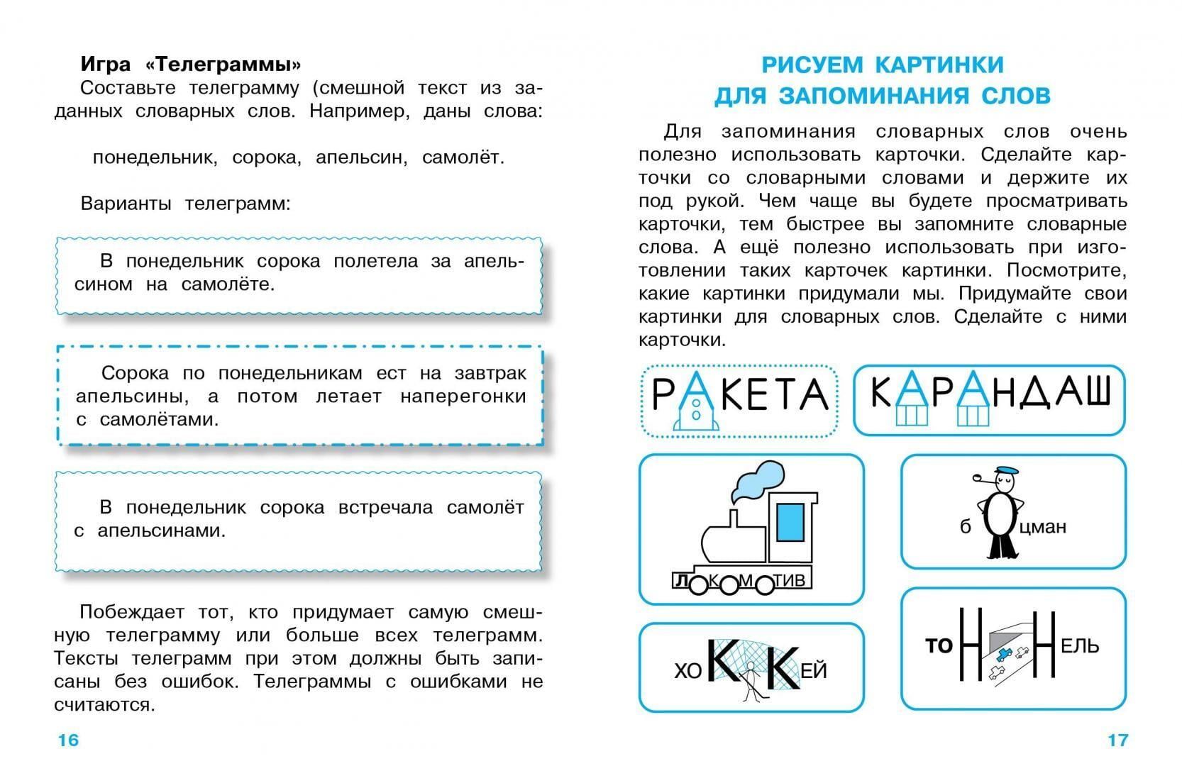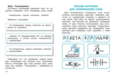 Memorizing vocabulary words for elementary school students is always a difficult and long process. How to make it interesting, fun and productive? This book contains different ways to memorize vocabulary words: games, rhymes, rebuses, picture memorizers, and much more. The colorful sticker cheat sheets feature memorized cards with some vocabulary words. Your child can stick these cheat sheets on the inside cover of a notebook, textbook or just in a prominent place at home to learn difficult words faster.