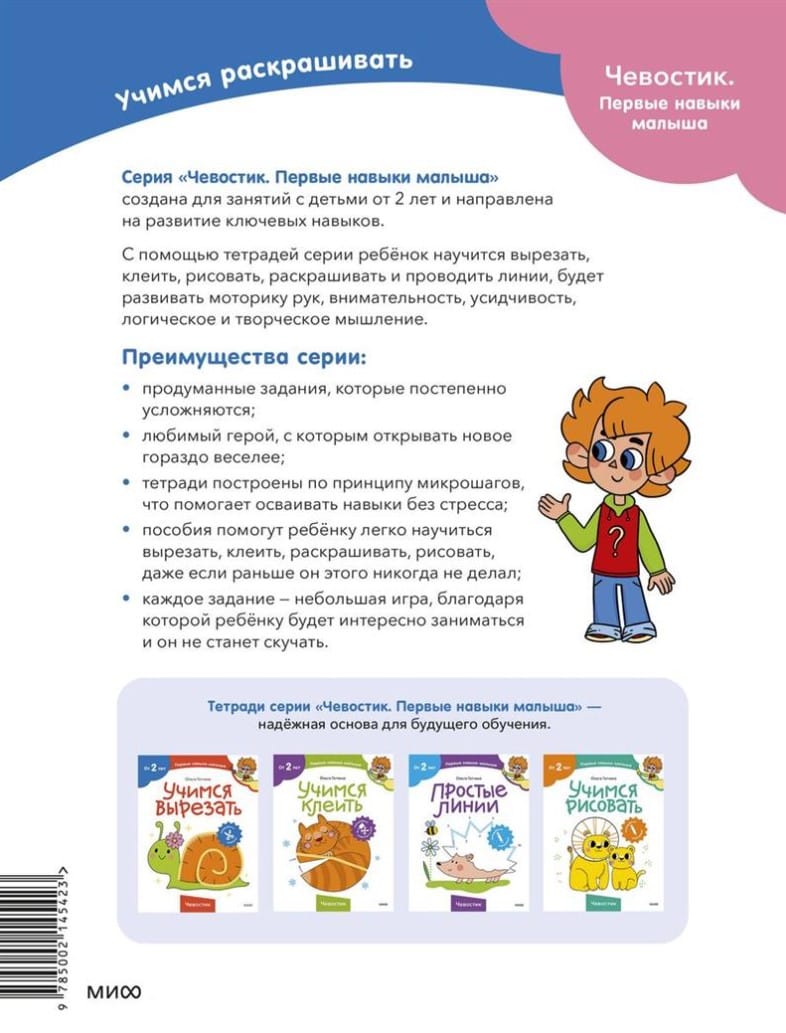 Thanks to the “Learning to Color” workbook, the child will remember colors, learn how to use a pencil or felt-tip pen, and color pictures neatly.