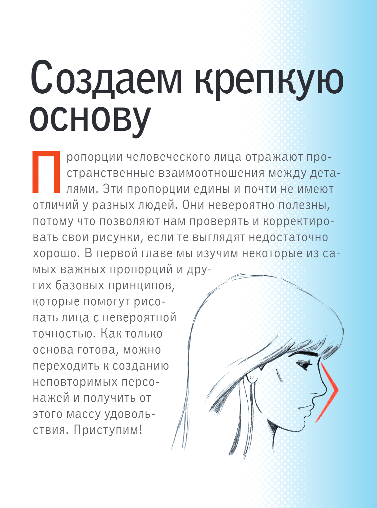 In his new book, the author will tell you step-by-step how to draw a human head from different angles, how to outline the silhouette and build the right proportions, how to depict the eyes, nose, mouth, as well as teach how to give the faces of characters more than 25 different expressions. The book will be useful not only for beginners, but also for experienced artists who lack references and live nature.