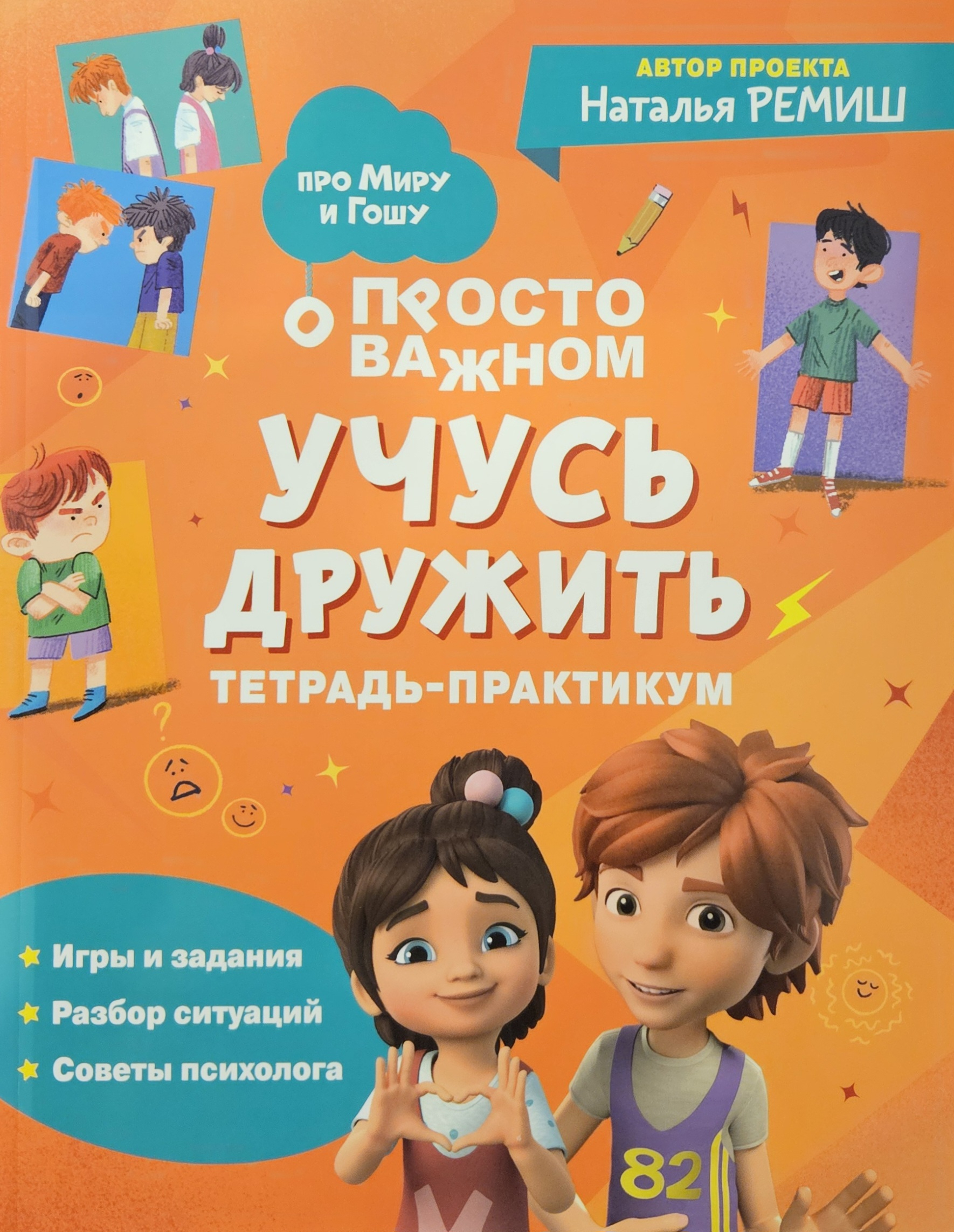 The practical workbook “Learning to be friends” will help a child take the first successful steps on the path to socialization. Familiar situations will teach them to recognize difficulties; exciting tasks and professional advice will show how to cope with them. And bright illustrations will make the joint work of children and adults even more interesting.