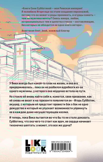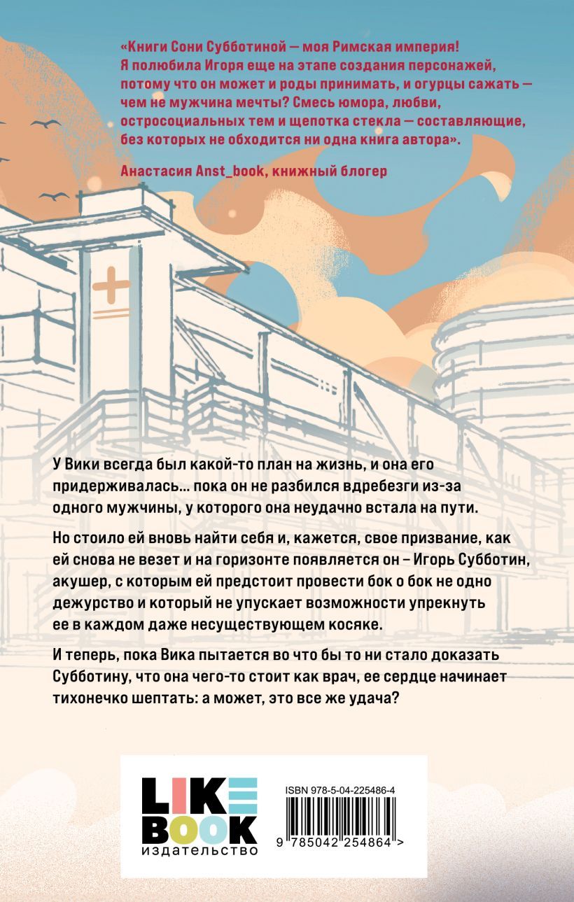 Vika always had some kind of plan for her life, and she stuck to it... until it was shattered by one man, whose path she had unluckily crossed. But just when she'd rediscovered herself and, it seemed, her calling, she'd run out of luck again, and he appeared on the horizon—Igor Subbotin, an obstetrician with whom she'd spend many shifts, and who never misses an opportunity to reproach her for every, even non-existent, mistake. And now, while Vika is desperately trying to prove to Subbotin that she's worthwhile as a doctor, her heart begins to quietly whisper: maybe this is luck after all?