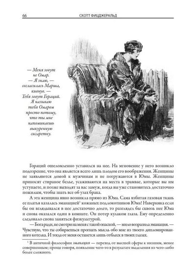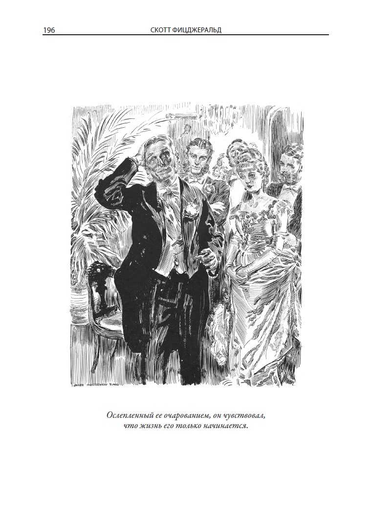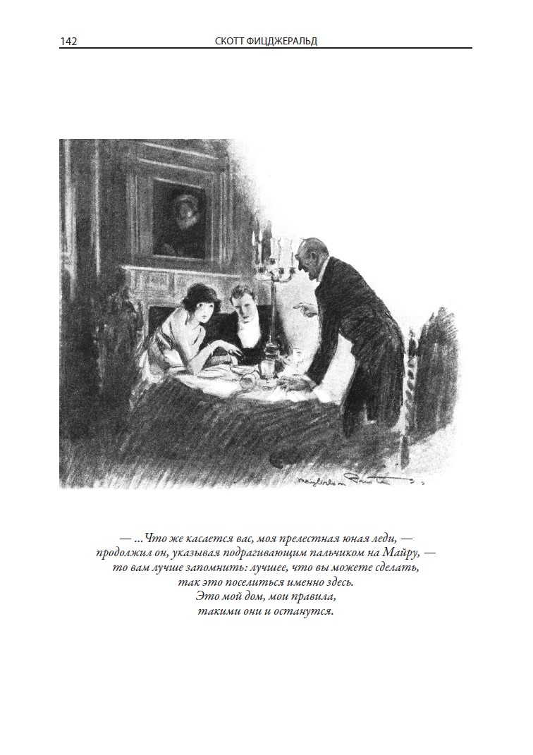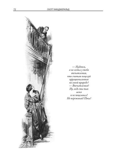 These drawings by twelve different artists in the book allow us to look at Fitzgerald's characters through the eyes of their contemporaries. Americans call the period of their history from the end of World War I to the beginning of the Great Depression the Jazz Age. The term was coined by Francis Scott Fitzgerald. In his stories that appeared in American magazines in the first quarter of the twentieth century, the atmosphere of that time is brilliantly conveyed. Fitzgerald wrote mainly about Americans who considered themselves "the cream of society". He himself secretly aspired to belong to them. Francis was born in 1896 in a family of Irish immigrants. His relatives paid for him to study at Princeton University. Within its walls, the young man began to dream of literary fame, because he certainly had literary talent. However, Francis never became his own among the "golden youth. Interfered with the Irish origin and low financial situation. Later Fitzgerald recalled that it was at this time in him originated in the "hostility to the class of idlers. Often the young people in his stories are such rich idlers and are. The prototype of many of the writer's young heroines was the beautiful Zelda. She was the daughter of a judge and was considered one of the most enviable brides of Alabama. The girl's family was against her marriage to an Irishman, unable to provide his future spouse a trouble-free existence. In love Fitzgerald decided that his only trump card could be a triumph in the literary field. He moved to New York, got a job in an advertising agency and began to write stories. At first things went badly - the manuscripts were returned. The first success happened only in 1920 after the publication of the novel "This Side of Paradise". Francis's works began to be published, and he married his Zelda. In a sense, Fitzgerald became one of the heroes of his novels. He bought a mansion in Manhattan and began to appear regularly with his wife at all the famous parties of the "Big Apple". Although, of course, idle bon vivant he was not - to lead such a lifestyle, he allowed only hard work writing. This life, seemingly outwardly so attractive, had its downside. Spouses often quarreled, jealous Zelda rolled her husband scandals, and he poured them with alcohol. Break out of the New York endless whirlwind helped a trip to Europe. It was there, in Paris, Fitzgerald finished "The Great Gatsby" - a novel that has become a masterpiece of American literature "jazz age". The atmosphere of that time is well conveyed by the drawings in this book. They are made by a whole galaxy of American artists who illustrated Fitzgerald's stories in the 20s of the last century.