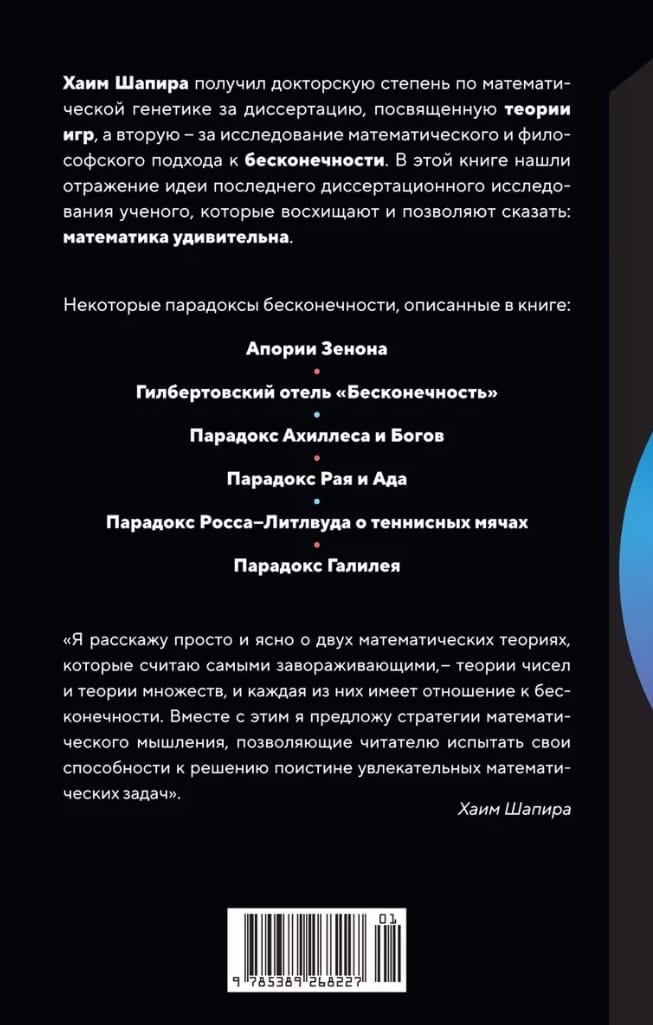 “Why do so many people shy away from the intricacies and beauty to be found in the world of numbers and their connections to each other? Perhaps the main reason lies in the inaccessibility of mathematics and the difficulties faced by those who want to learn it. Indeed, mathematics is very complex, and to understand its intricacies, you need to spend time and put mental effort - but for especially exquisite pearls sometimes you have to dive to the most inaccessible depths. It is important for me that this book can be read with pleasure by anyone who is curious enough and wants to work his head from time to time.” (Chaim Shapira)