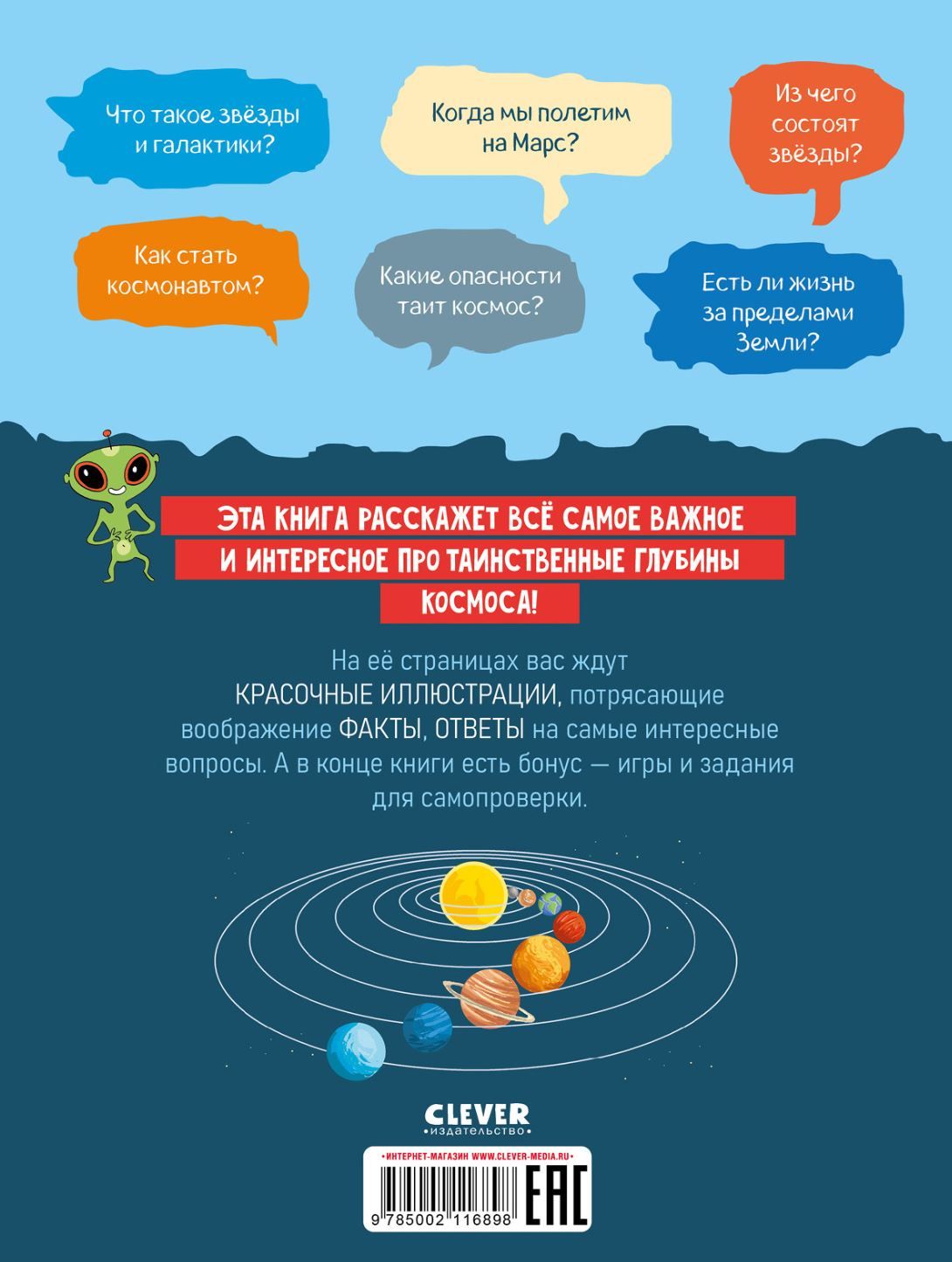 This book will tell you all the most important and interesting things about the mysterious depths of space. On its pages you will find colorful illustrations, mind-blowing facts, answers to the most interesting questions. And at the end of the book there is a bonus - games and tasks for self-testing.