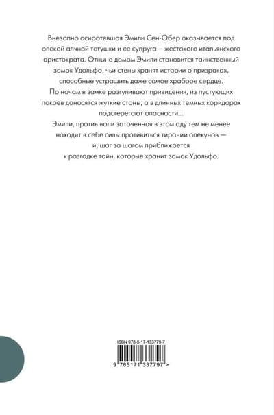 Suddenly orphaned Emily St. Aubert finds herself in the care of her greedy aunt and her husband, a cruel Italian aristocrat. From now on, Emily's home is the mysterious Castle Udolfo, whose walls contain ghost stories that can terrify even the bravest heart. At night the castle is haunted, eerie moans come from the empty chambers, and in the long, dark corridors of the castle there are dangers ...