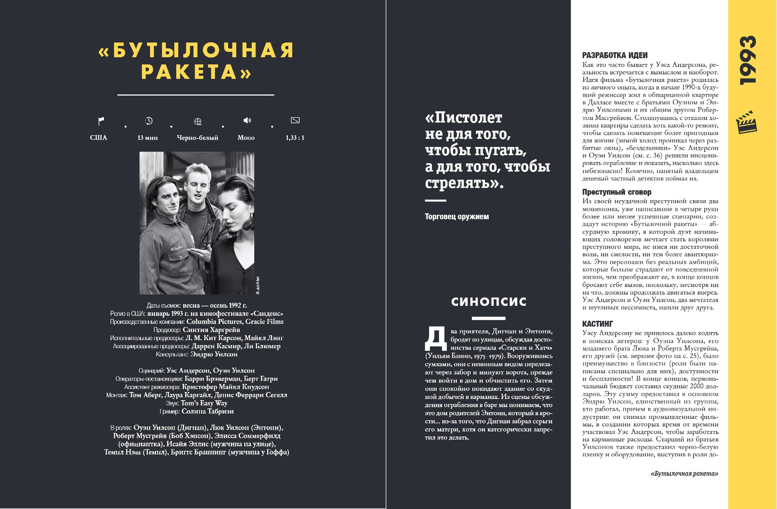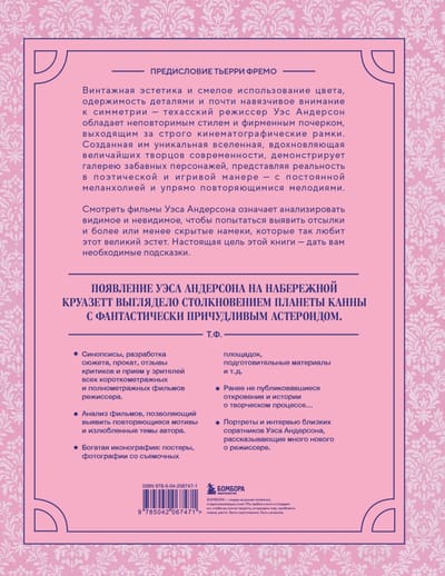 Inside you will find: the history of each film: from idea to implementation; rich iconography: posters, photos from the set, props; interviews with close associates of Wes Anderson; never-before-seen revelations: secrets of the filming and anecdotes about the creative process.