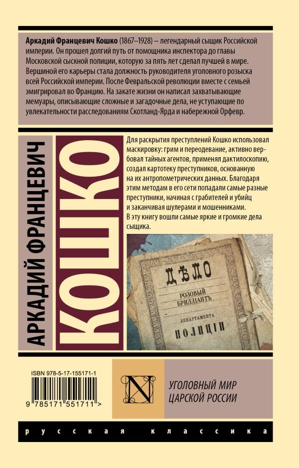 To solve crimes, Koshko used disguises: makeup and disguises, actively recruited undercover agents, used fingerprinting, and created a card catalog of criminals based on their anthropometric data. Thanks to these methods in his network fell the most diverse criminals, ranging from robbers and murderers to cheats and swindlers.