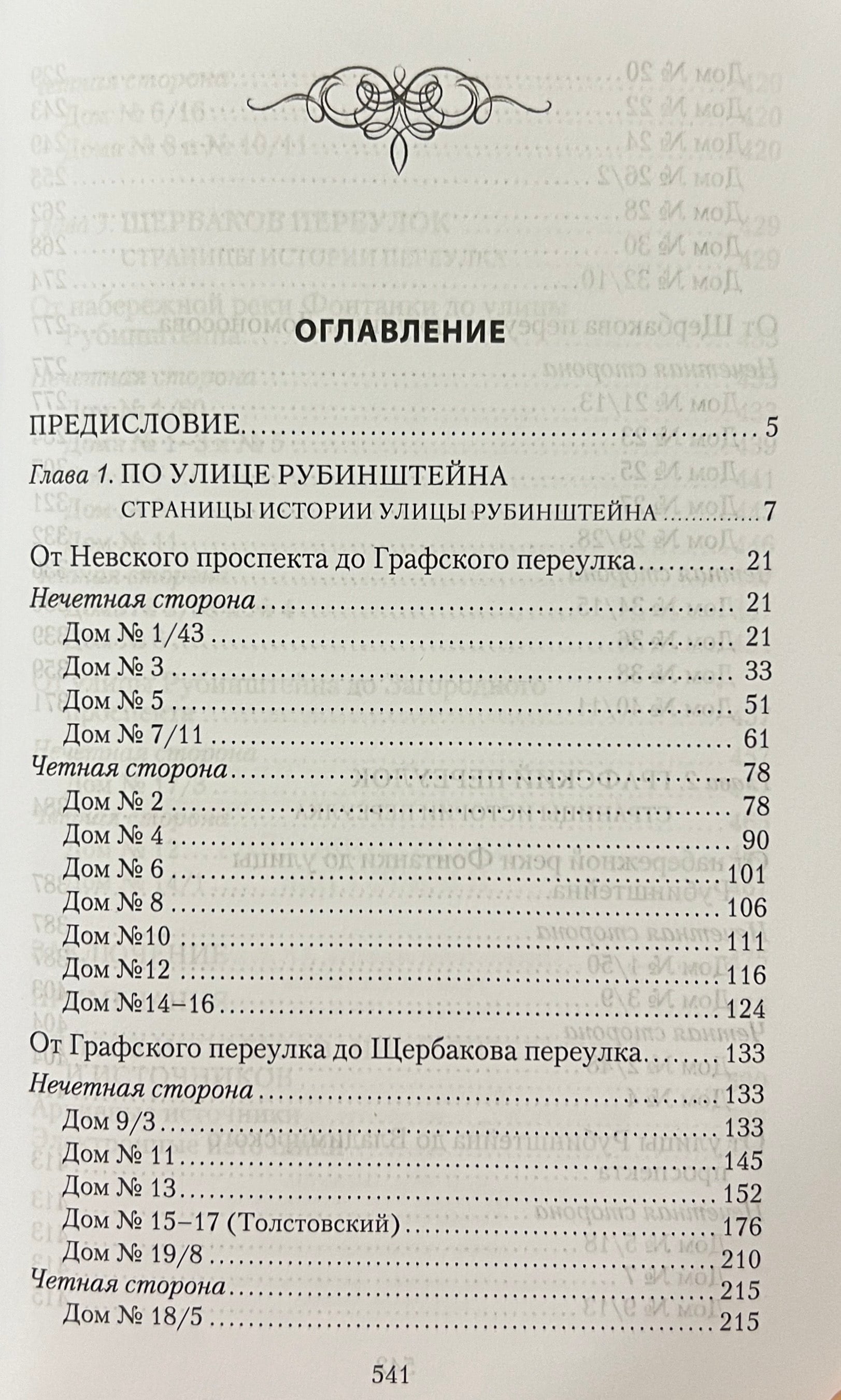 This book is a continuation of a series of peculiar guides to the streets, squares and embankments of St. Petersburg. Today we will talk about Rubinstein Street and the adjoining Grafsky and Shcherbakov lanes. There are not many publications devoted to them, but their history is very interesting and is connected with many generations of Petersburgers who belonged to different estates, nationalities and professions, who lived, served or visited here: military men and officials, merchants and burghers, writers and artists, painters and architects... The stories of more than two hundred and fifty famous people will pass before you, and the authors will try to reveal the secrets that local houses keep. The origin of this small street, stretching for 700 meters from Nevsky Prospekt to the intersection with Zagorodny Prospekt and Lomonosov Street, dates back to the time of Empress Anna Ioannovna! At the turn of the century Rubinstein Street was and remains one of the centers of theatrical and musical life of the Northern Capital. Today, the street continues to live and develop, walking along it, it is as if we are together with you in a European city with different architecture and cuisines of many countries.