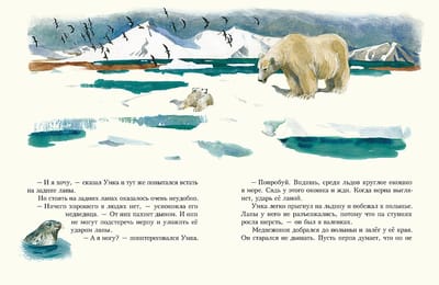 Familiar to many from the cartoon of the same name, the polar bear cub Umka lives in a snowy den with his mother bear. She tells him about the huge world outside the den, and one fine spring morning the bears come out to see it with their own eyes. Amazing discoveries await Umka, meeting a boy and traveling on an ice floe with her mother.