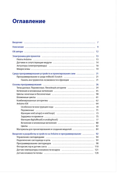 The book not only introduces the basics, but also takes you step by step through the process of designing and programming on Arduino. Each chapter includes: a list of necessary electronics; an electrical circuit in two versions; drawings and pictures for the supporting structure of the device with a description of the material; instructions for assembling the device; programming basics.