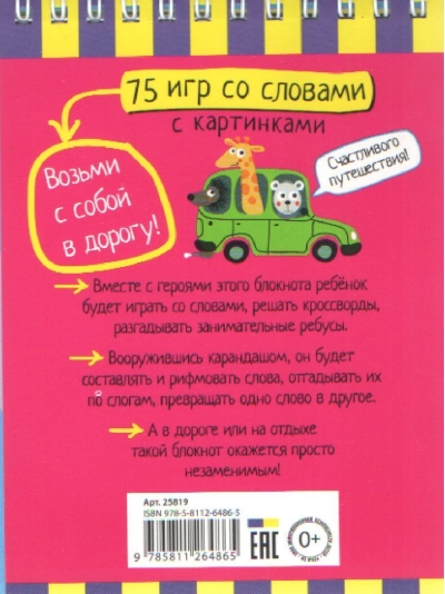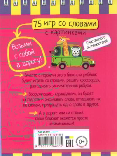 The "75 Word Games" smart notebook develops children's creative verbal skills, auditory perception, attention, and imagination. The book features word games, illustrated crosswords, and engaging puzzles. Answers to the tasks are provided on the last five pages of the notebook. This book is designed for children ages 5 and up.
