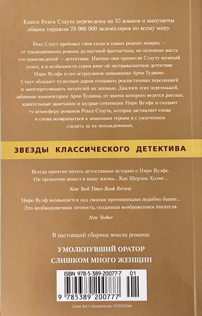 Niro Wolfe, a passionate collector of orchids, a big gourmet, a lover of beer and a great detective, almost never leaves the house. All crimes he unravels based on the facts collected by Archie Goodwin, his charming, ironic assistant with an excellent memory.
