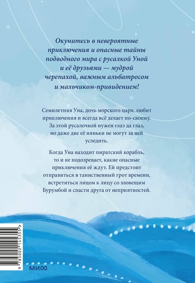 One day she finds a sunken pirate ship and does not even suspect what threat lurks in it..... Una has to travel to the mysterious grotto of time, come face to face with the sinister sorcerer Burumba and save her new friend Eyo from trouble. In the new book by Julia Simbirskaya you are waiting for extraordinary treasures of a pirate ship, sharks, octopuses, actinia and grottoes with time keepers. The main thing is not to lose your sense of humor among all this variety.