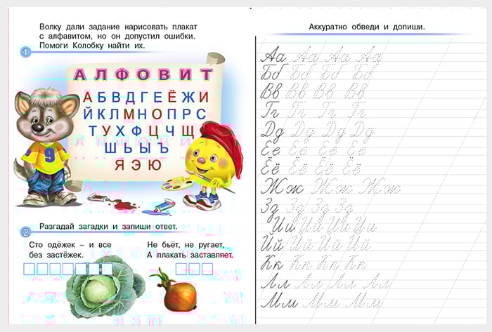 Notebook "Learning to Write the Alphabet" from the series "Writing Lessons. Scribes and tasks" is a colorful developmental aid for preschool education. In addition to exercises for practicing the skills of writing letters, the notebook contains various tasks for the development of logic, attention, speech, memory and thinking: mazes, rebuses, crossword puzzles, search for differences, coloring by numbers and so on. The manual can be used for independent lessons with your child at home or in kindergarten. It is suitable for children aged 3-6.