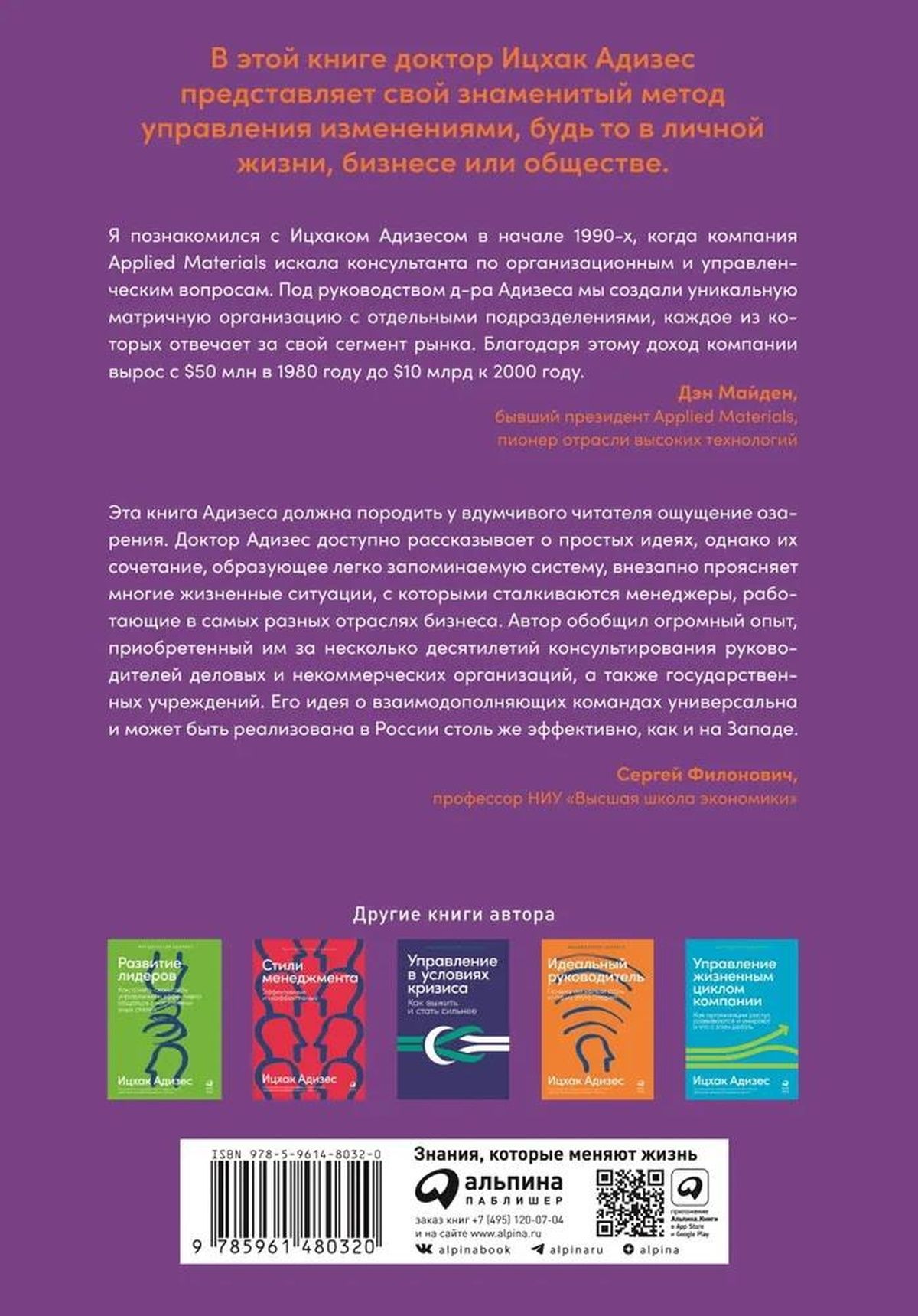 This book incorporates 50 years of Adizes’ experience with corporate clients and has become a reference book for generations of leaders around the world. In it, the author offers a comprehensive methodology of change management, which allows you to make high-quality decisions, organize teamwork, solve problems, make conflicts constructive, find a common language with management and subordinates and create an atmosphere of mutual trust and respect.