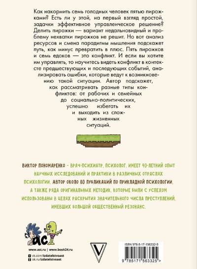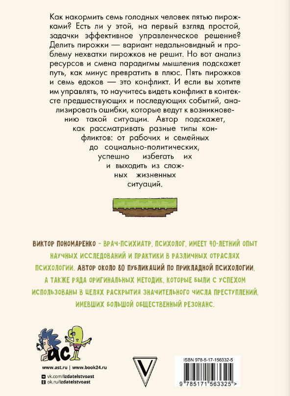 Five pies and seven eaters equals conflict. If you want to manage it, you'll need to learn to see it in the context of preceding and subsequent events and analyze the mistakes that lead to it. The author will show you how to approach different types of conflicts—from work and family to sociopolitical ones—and successfully avoid them and navigate difficult life situations.