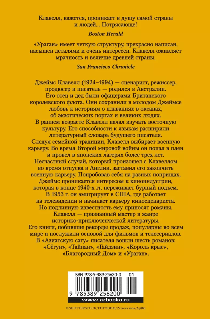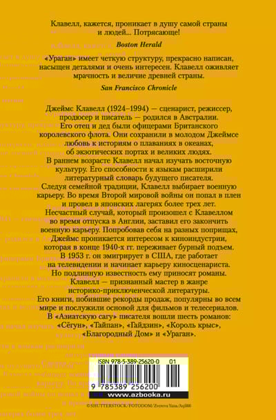 Iran in 1979. A narrow circle of oil tycoons and crowds of poor, desperate people. One spark is enough to ignite riots and drown in blood those who yesterday bathed in luxury.... As a result of the coup, the pro-Western regime of Shah Pahlavi is overthrown, and the "war of all against all" begins, which is not without the intervention of the secret services of the great powers interested in Iranian oil. The Noble House, a huge holding company whose business is connected with oil production, does not lose its vigilance. In order to take people and assets out of the country, plunged into the chaos of the revolution, a helicopter company secretly owned by the holding is preparing for an unheard of daring operation. Slow down can not - too dangerous to take off from the "powder keg", provided that all helicopters must fly from their bases at the same time... The novel "Hurricane" (1986) completes the "Asian saga" Clavell. There are those who reproach the author for some confusion and mixing of genres in this book, but it is hard to deny his foresight: describing the turbulent events in Iran in the late seventies, he seemed to see several decades ahead.