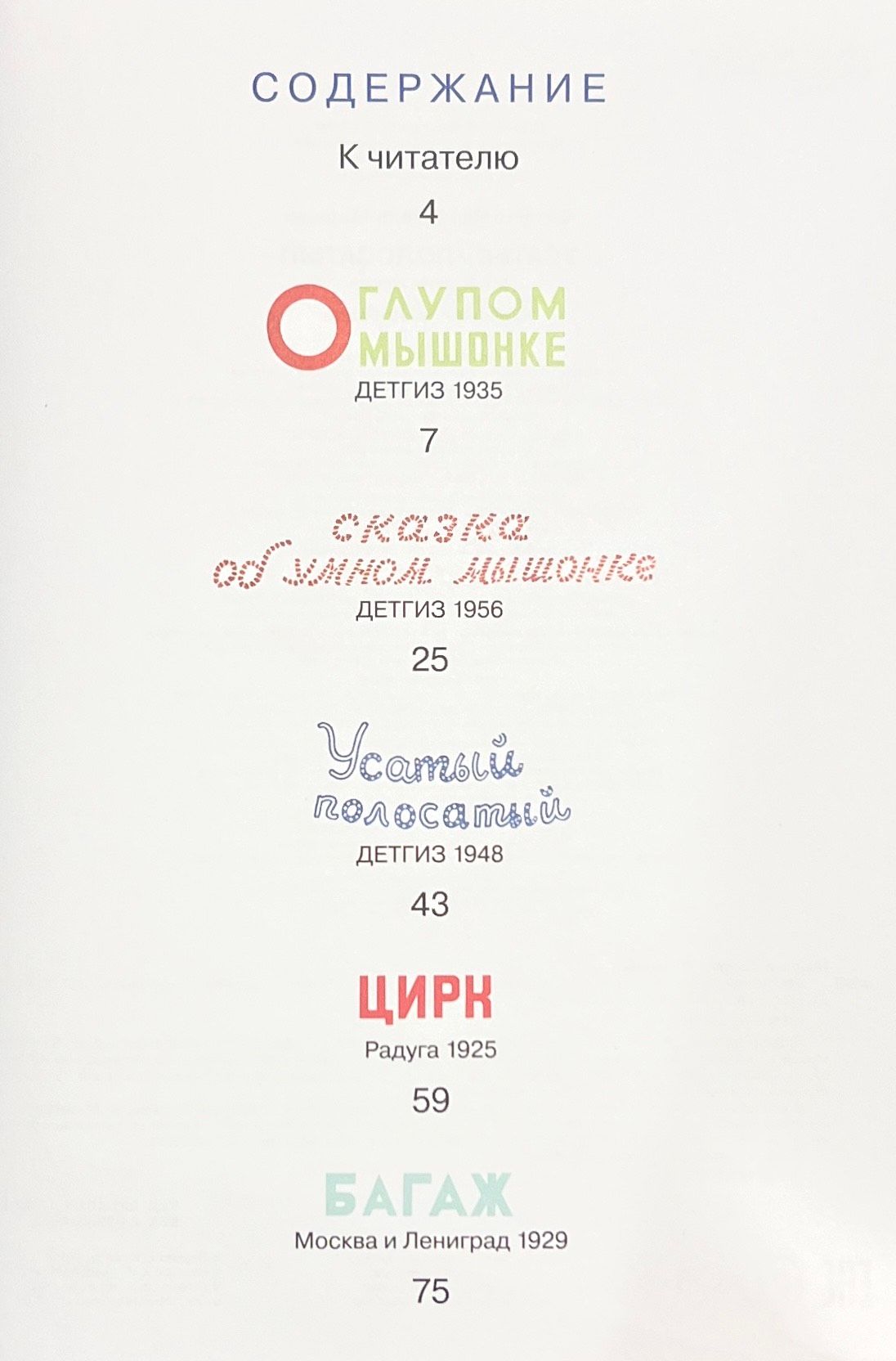 The collection "Whiskers and Stripes" includes books that were published as separate booklets long ago - books with famous fairy tales and poems by S. Marshak ("The Tale of the Foolish Mouse", "The Tale of the Clever Mouse", "Whiskers and Stripes", "Circus" and "Baggage") and illustrations by the famous artist V. Lebedev. The collection includes the first versions of the texts. For preschool age.