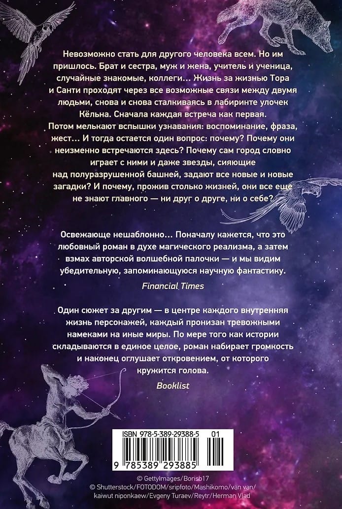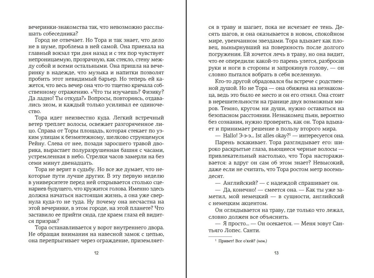 Brother and sister, husband and wife, teacher and student, casual acquaintances, colleagues... Life after life, Thor and Santi experience every possible connection between two people, encountering each other again and again in the labyrinthine streets of Cologne. At first, each encounter feels like the first. Then flashes of recognition flicker: a memory, a phrase, a gesture... And then one question remains: why? Why do they always meet here? Why does the city itself seem to play with them, and even the stars shining above the dilapidated tower pose ever new mysteries?