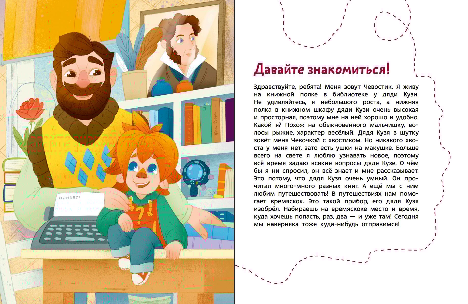 In their new encyclopedia, Chevostik and Uncle Kuzya invite you on an extraordinary journey—to where stories are born and characters come to life. The book opens up the rich world of literature to the reader, helping them understand why it captivates people and why it is so important in our lives.
