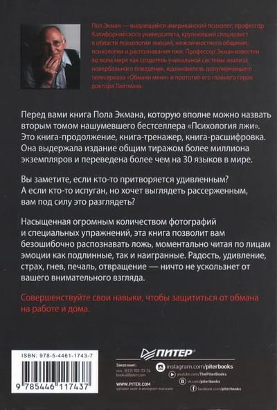 Will you notice if someone pretends to be surprised? And if someone is frightened but wants to look angry, can you discern it? Packed with a huge number of carefully selected photos and special exercises, this book will allow you to unmistakably recognize a lie, instantly reading on the faces of emotions: both genuine and "fake". Joy, surprise, fear, anger, sadness, disgust - nothing will escape your scrutiny. Improve your skills to protect yourself from deception at work and at home. Paul Ekman's skills will serve you well.