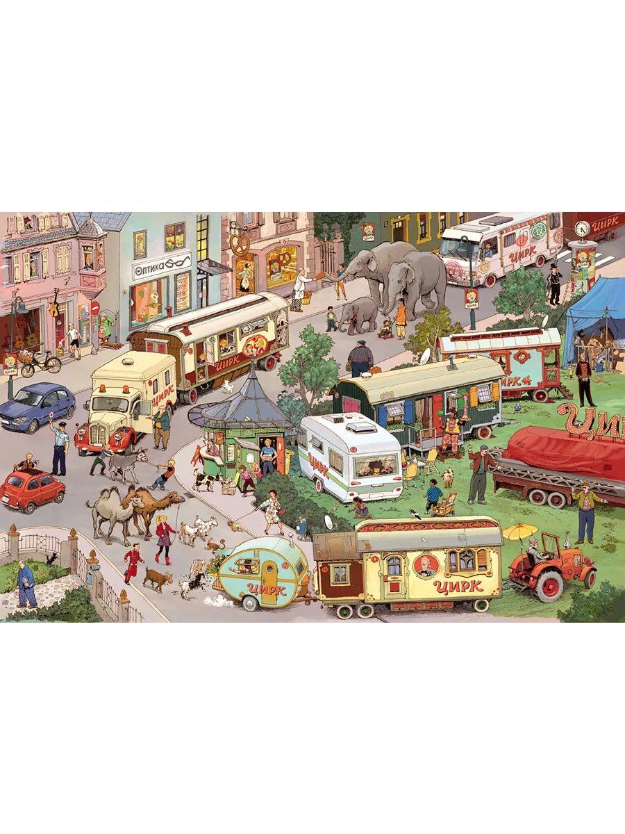 "At the Circus. Story in Pictures" is a fascinating drawn story about how the circus came to a small town, and in the evening all the residents rushed to the fantastic performance. Children love the circus, so a child will not get bored looking at the scientist elephants, camels and colts. You can get to know Göbel and Knorr's characters - their names and portraits are on the cover - or you can make up your own names and follow the adventures. After all, the arrival of the circus is a real adventure. It's not every day that elephants, monkeys, donkeys, camels and bears with barking "mosses" drive through the streets. The book has a through story that the child can follow and retell, looking at each character on each page. Thus, the kid himself or with the help of adults not only learns, for example, how to put a tent or what is a circus, but also learns to understand other people, their actions and actions. In this respect, "At the Circus" can be put on a par with the famous "Stories in Pictures" by Nikolai Radloff. The book by Göbel and Knorr is also useful to use in work with children and speech therapists, and educators, and psychologists. The art of detail in Göbel and Knorr is almost like in French painting of the XVIII century, only - for children. In addition to the fact that the book is simply curious to look at, it creates an impression of the diversity of the world: one hero looks at the clock and afraid to be late, another at the same time chatting with friends, and the third with astonishment watching the flying piglet. This is the kind of "vinaigrette" we live in, so it's great to have the opportunity to look into it.