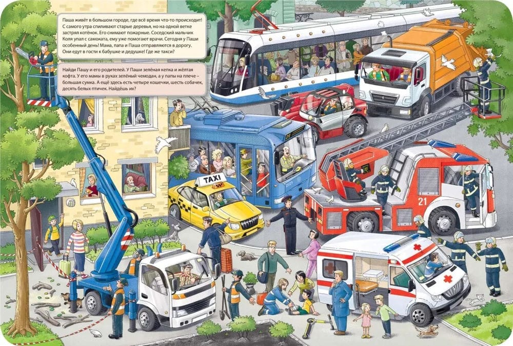 Pasha lives in a big and noisy city. Today is his special day - he is going on a road trip! Together with his mom and dad he is going to visit his grandparents in the village. They will take a long way - they will go by cab, then by train and even by boat. How many interesting things Pasha will see on the way! He will carefully look at everything to tell his favorite grandparents. Consider with him! The book is large format, printed on dense cardboard. For adults to read to children.