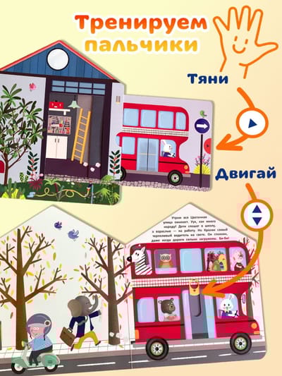 Interactive elements help develop fine motor skills. Children can pull, twist, and move the parts, exercising their fingers. These books-toys are designed for children up to 3 years old and are a wonderful bedtime read.