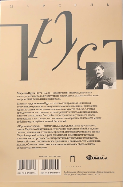 This edition of "In Search of Lost Time" is published in the classic translation by M.N. Lyubimov, and the final, seventh volume is translated by A.N. Smirnova. The structure of the work, however, allows for multiple reading methods: each book simultaneously represents both a link in the chain of the overall narrative and an autonomous work in its own right.
