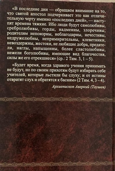 The book by Archbishop Averky (Taushev) continues the series “Prophecies of the Holy Fathers and Ascetics of Piety about the Last Times.” This collection includes selected sermons of the bishop about the Last Judgment, the Antichrist and the end of the world.