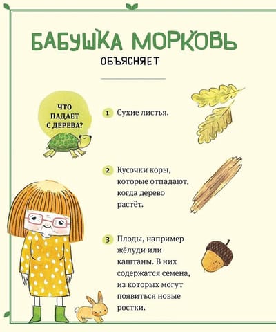The series "In Basil's Garden" is educational books for the little ones about the amazing world of plants. Grandma Carrot will find answers to a variety of questions from her grandson Basil: can plants love, how do they have children, what abilities do they have and what can they do.