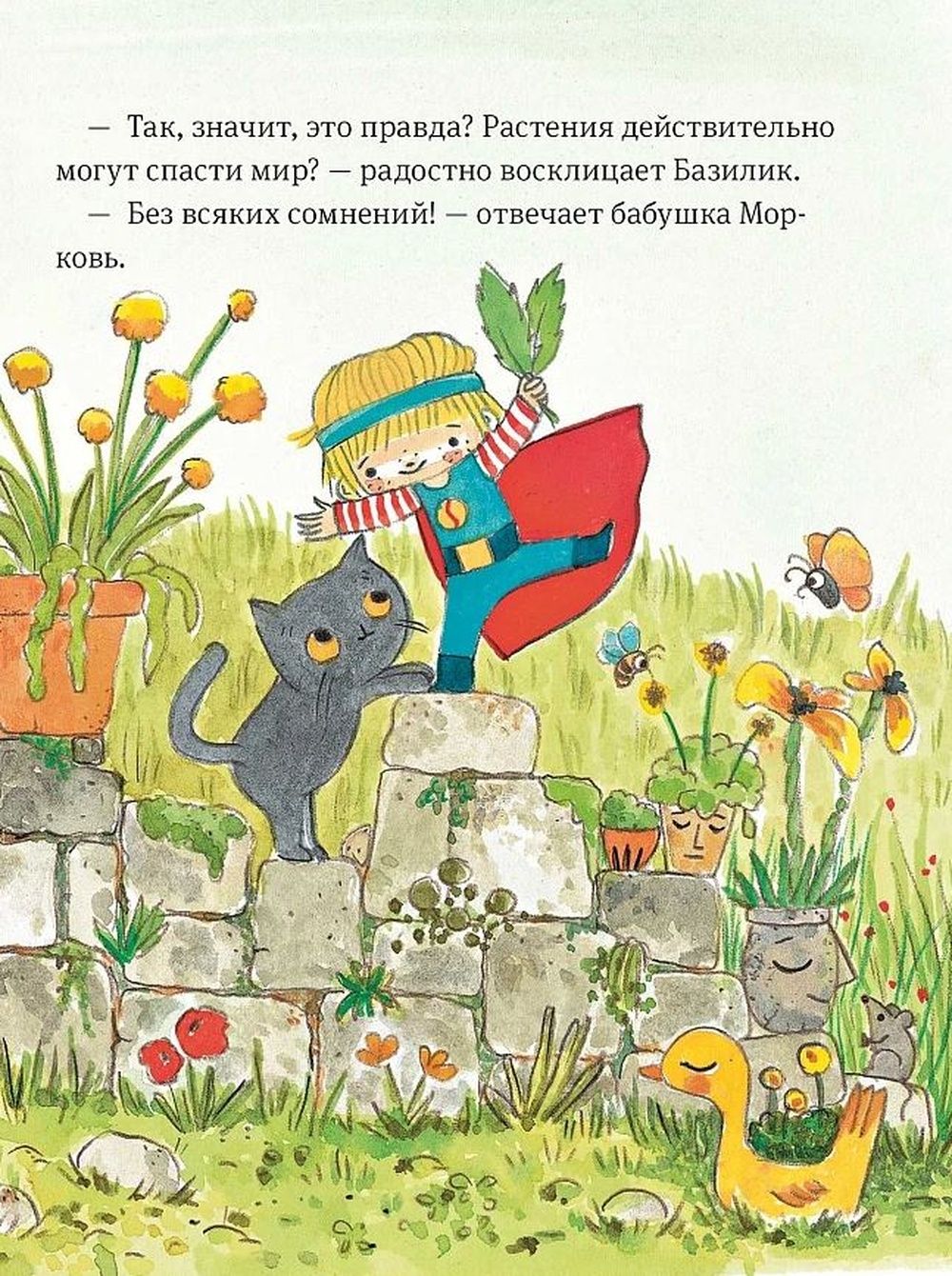 Today Basil is a superhero in a cool suit. He can even fly! Well, almost... But in Grandma's garden, the main superheroes are plants. They can heal wounds, protect from bad weather and purify the air. How exactly? Grandma Carrot will tell you now!
