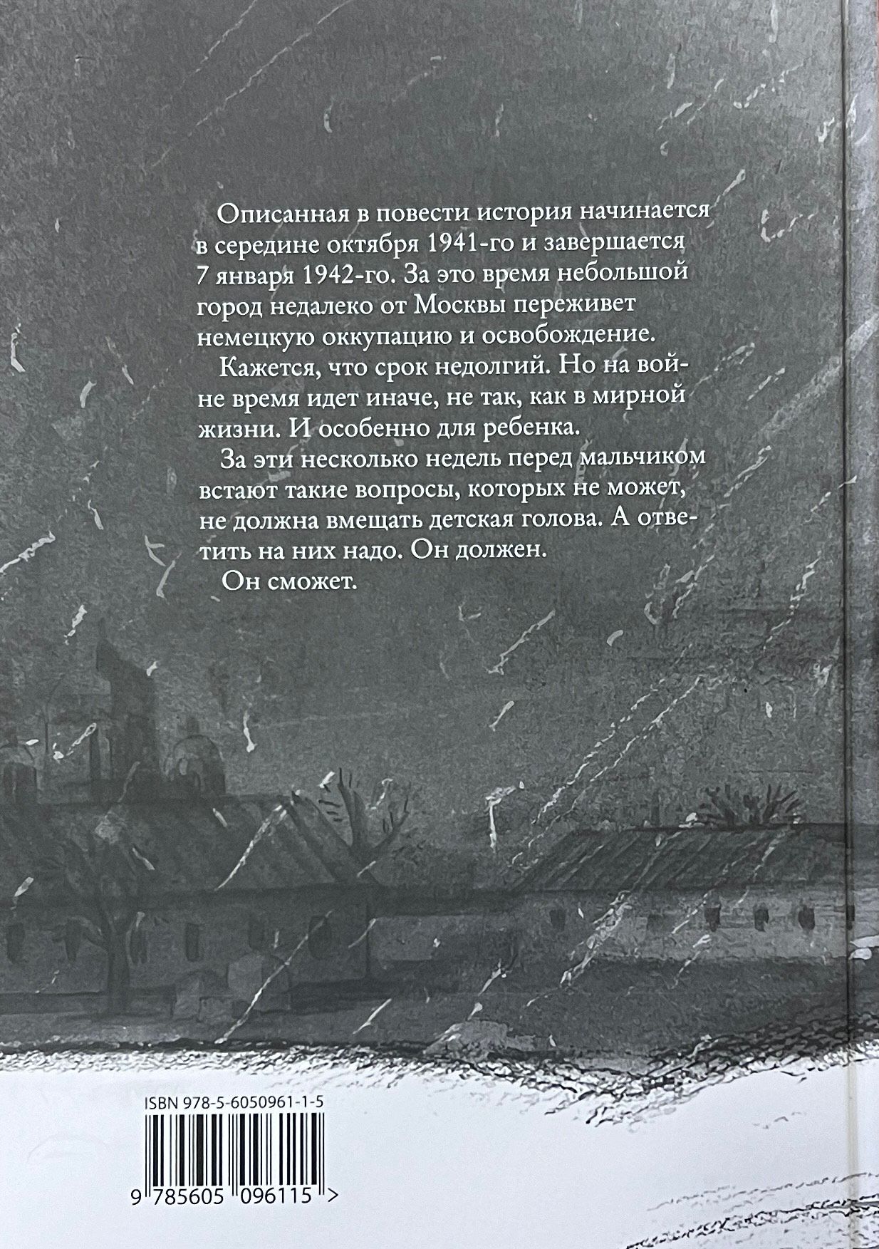 The story described in the story begins in mid-October 1941 and ends on January 7, 1942. During this time, a small town near Moscow will survive the German occupation and liberation. It seems like a short time. But at war time goes differently, not like in peaceful life. And especially for a child. During these few weeks, the boy faces such questions, which can not, should not accommodate a child's head. But he must answer them. He must. He can.