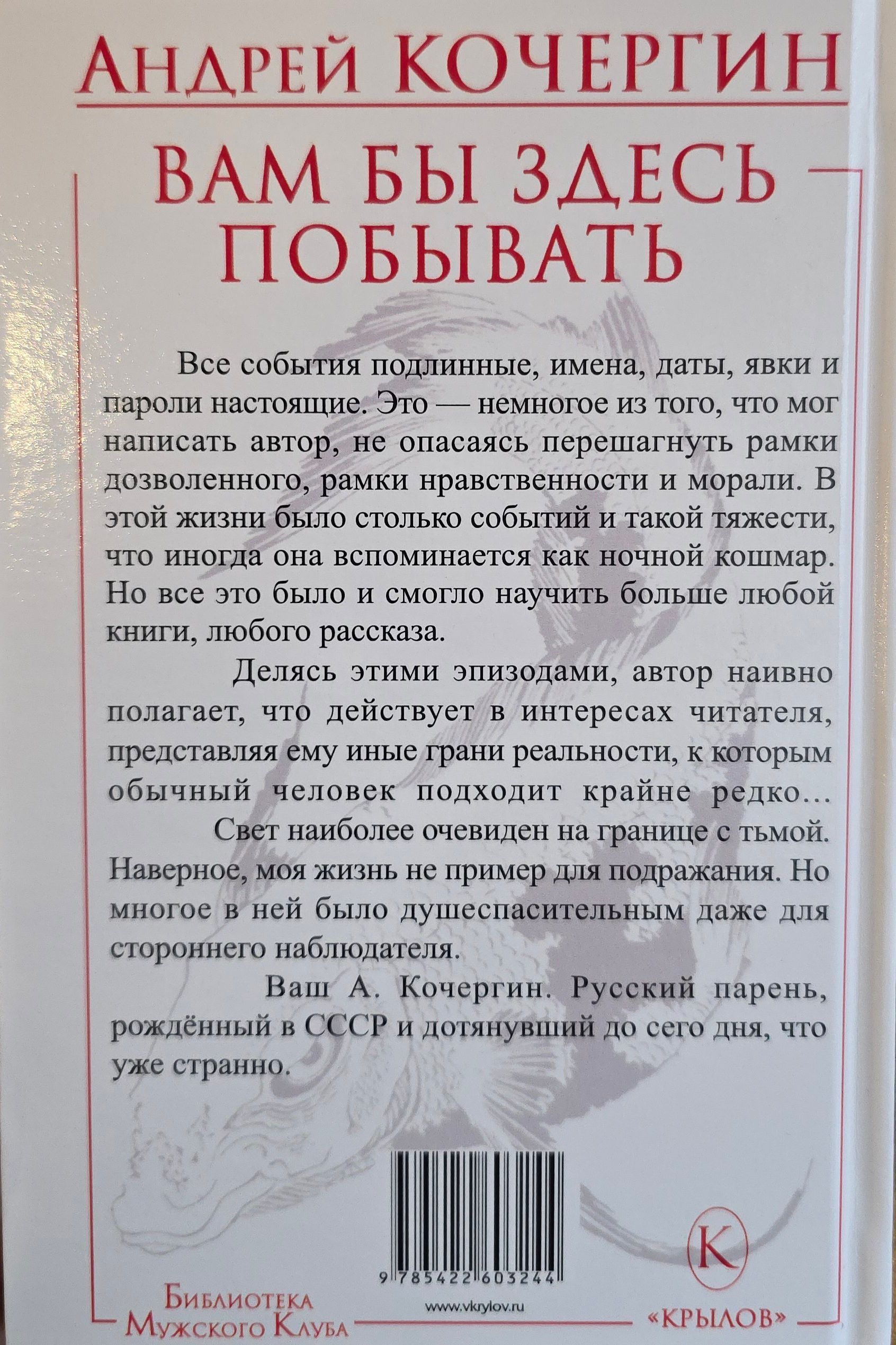 All events are real, names, dates, addresses and passwords are real. This is a little of what the author could write without fear of overstepping the bounds of what is permitted, the bounds of morality and ethics. There were so many events and such heaviness in this life that sometimes it is remembered as a nightmare. But all this was and was able to teach more than any book, any story. Sharing these episodes, the author naively believes that he is acting in the interests of the reader, presenting him with other facets of reality, which an ordinary person approaches extremely rarely... Light is most obvious on the border with darkness. Perhaps, my life is not an example to follow. But much in it was soul-saving even for an outside observer. Yours, A. Kochergin.