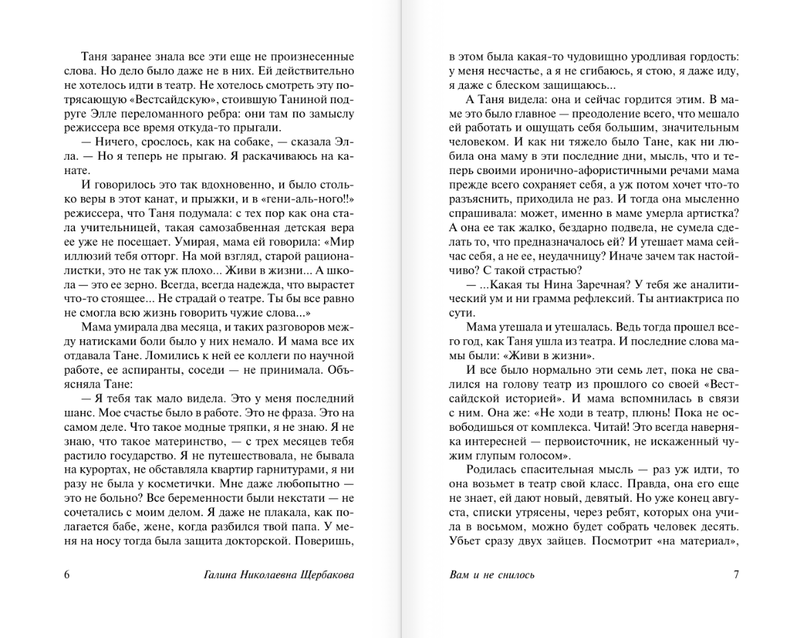 All of Galina Shcherbakova's work is a collection of such different and at the same time similar human stories about the search for happiness. And yet each of her works is dedicated to the most universal feeling, without which life would lose its meaning - love. It was love that came to Yulka and Roma, the heroes of the textbook story "You never dreamed...". Having forgotten about their studies, the boys completely dissolve in each other and enjoy every day spent together. But their families, being not at all delighted with this development of events, decide to interfere in the relationship of the new Romeo and Juliet....