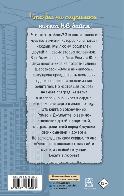 "You Never Dreamed" is the most touching story about love by Galina Shcherbakova, a famous writer and screenwriter. This is a story about first love, which happens to everyone, about feelings and emotions, about parents and children. This is a story about life, about mutual understanding, about the trust of parents and children in each other, about the fact that you cannot blame others for your failures, about how important it is for parents to listen and hear their children, and for children to hear their parents. This story was written in 1979, in 1980 a film of the same name was released, but the themes touched upon in them are relevant at all times.
