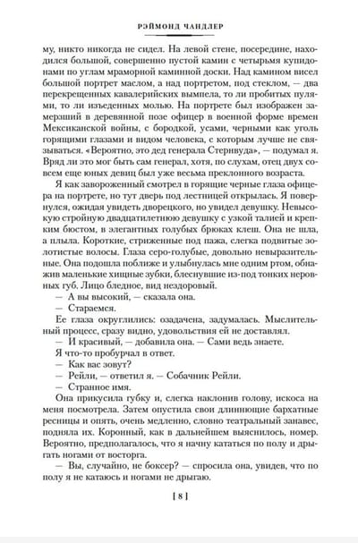 Raymond Chandler's books about Philip Marlowe not only laid the foundations of the hard-boiled detective genre, but also became modern classics in the broadest sense. This edition contains the first three novels about the famous private detective - "The Sleepover", "Farewell, Beautiful" and "The High Window". Marlowe is a new type of detective hero: he is a romantic, a sentimental knight, always preserving his individuality and adhering to a code of honor. He does not look for adventure - they themselves find him, and the plot, replete with signature dizzying intricacies, usually begins quite innocently. So in "The Sleepover", retired General Sternwood instructs Marlowe to deal with an adventurer who is blackmailing his youngest daughter; in the first scene of the novel "Farewell, Beautiful", the detective simply reminds one thug that he has to pay for his drinks; and in The High Window, Marlowe is tasked by widow Mrs. Murdoch with finding the Brasher Doubloon, a rare gold coin missing from her late husband's collection...
