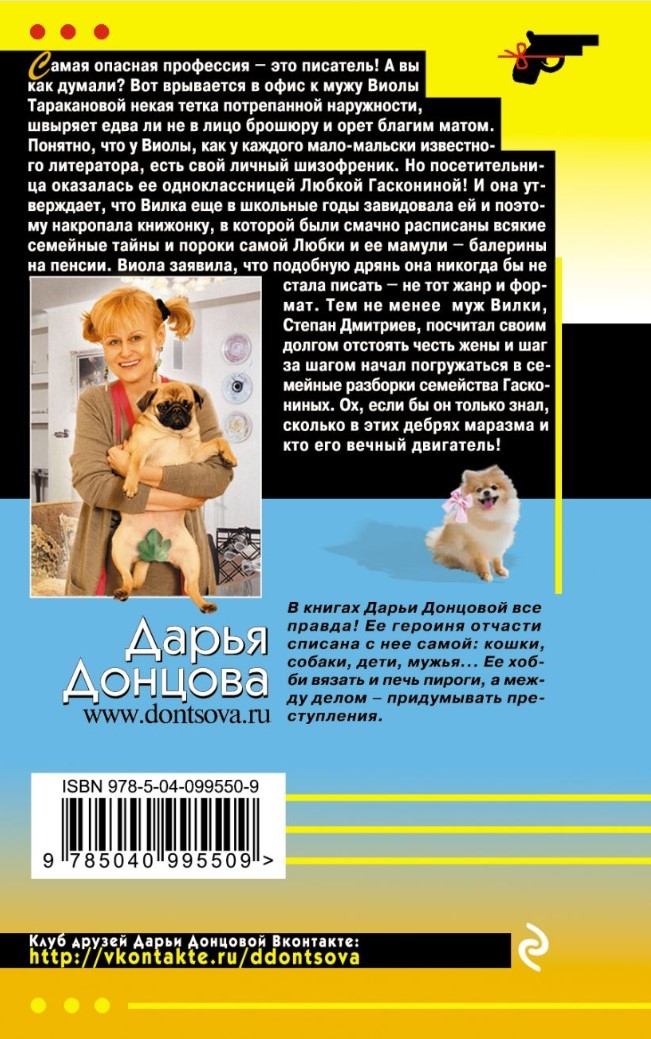 The most dangerous profession is writing! What did you think? A certain woman of shabby appearance bursts into the office of Viola Tarakanova's husband, throws a brochure in his face, and screams. It is clear that Viola, like every little-known writer, has his own personal schizophrenic. But the visitor turns out to be her classmate Lubka Gaskonina! And she claims that Vilka was jealous of her in her school years and therefore scribbled a book, in which were savored all sorts of family secrets and vices of Lyubka and her mother - a retired ballerina. Viola said that such trash she would never write - not the genre and format. Nevertheless, Vilka's husband, Stepan Dmitriev, considered it his duty to defend his wife's honor, and step by step began to dive into the family squabbles of the Gaskonin family. Oh, if he only knew how much marasmus there was in these wilds, and who was its perpetual motion machine!