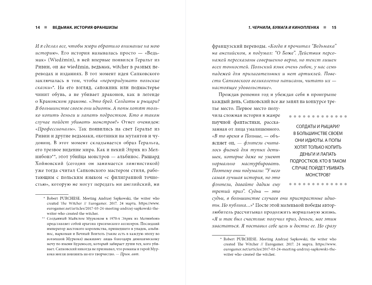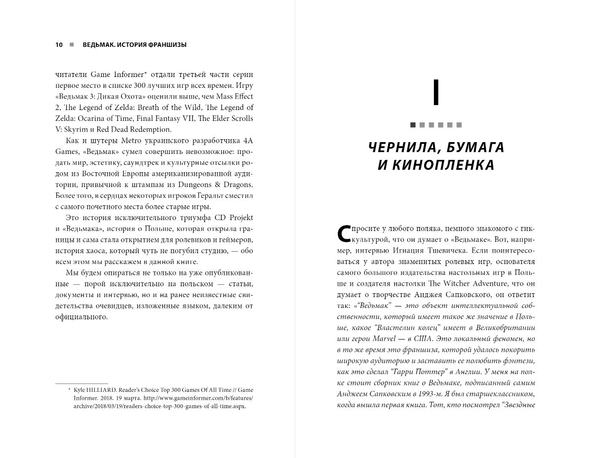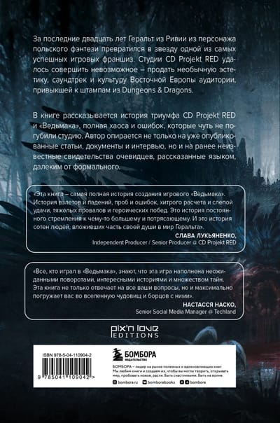 Today, this look is known to any player: white hair, two blades ("silver for monsters, steel for people"), cat pupils. For some twenty years, Geralt of Rivia, the hero of the saga "The Witcher", from a character of Polish fantasy turned into a star of one of the most successful and ambitious game franchises. Since the release of the first installment, "The Witcher" has become a true international phenomenon. With its help, CD Projekt RED studio managed to accomplish the impossible - to sell the unusual aesthetics, soundtrack and culture of Eastern Europe to an audience accustomed to the stamps from Dungeons & Dragons. The book tells the story of the unique triumph of CD Projekt and "The Witcher", full of chaos and mistakes that almost ruined the studio. The author relies not only on already published (sometimes exclusively in Polish) articles, documents and interviews, but also on previously unknown eyewitness accounts, told in a language far from formal.