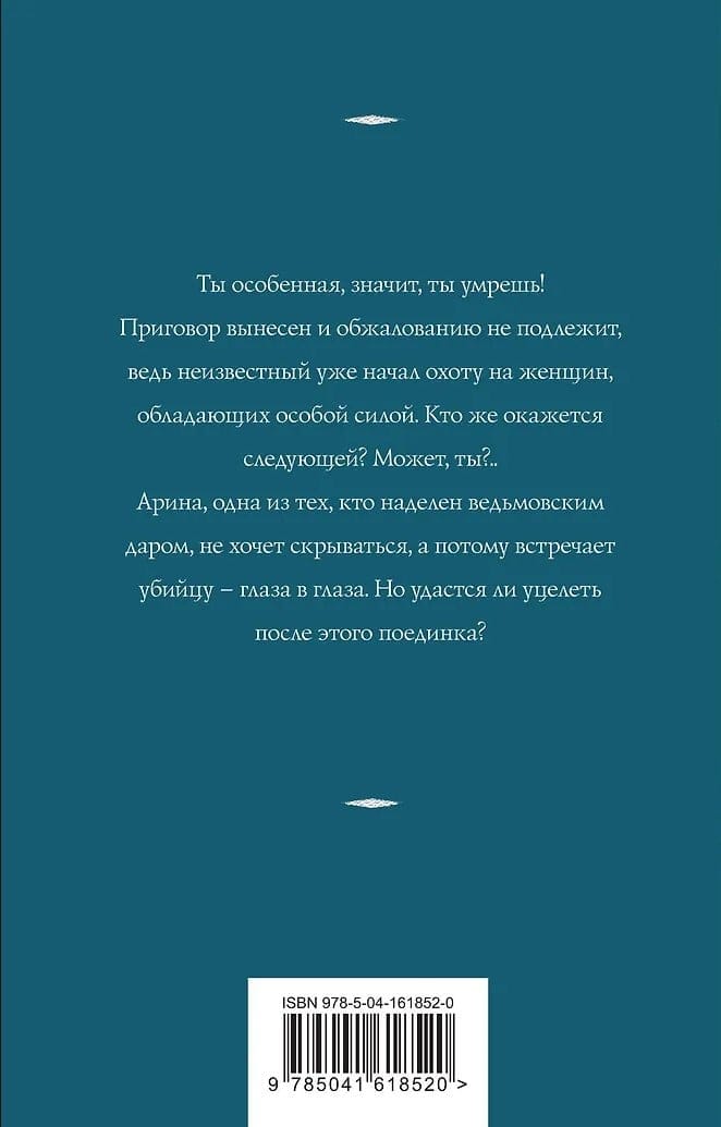 Arina, one of those gifted with the witch's gift, refuses to hide, so she confronts the killer, eye to eye. But will she survive this duel?