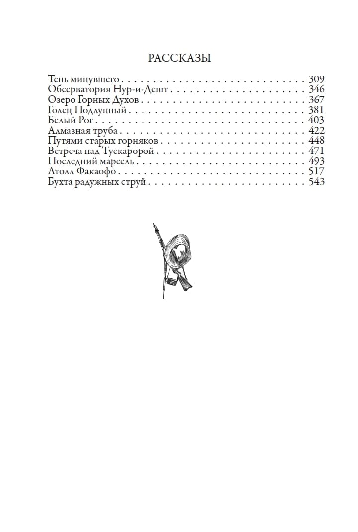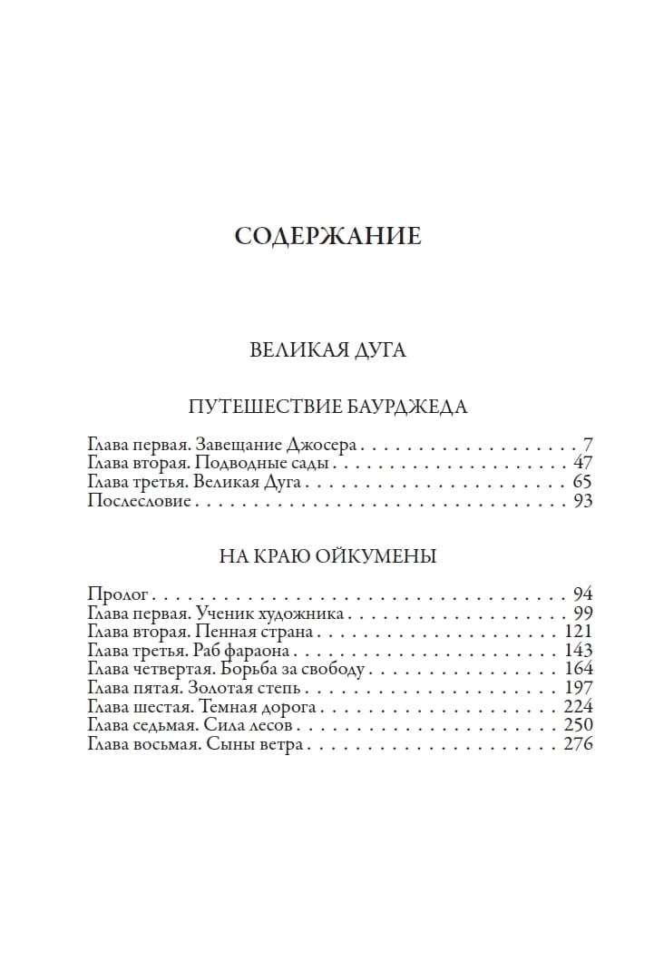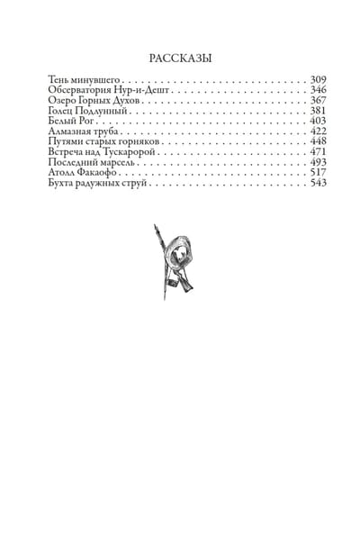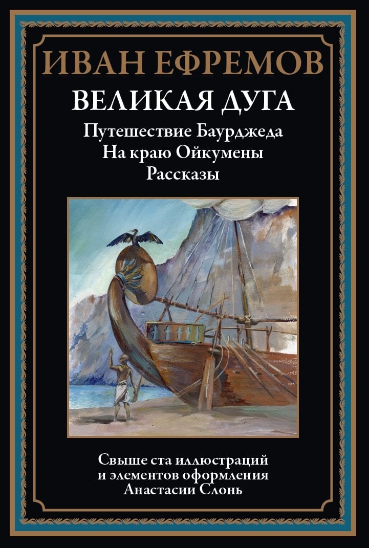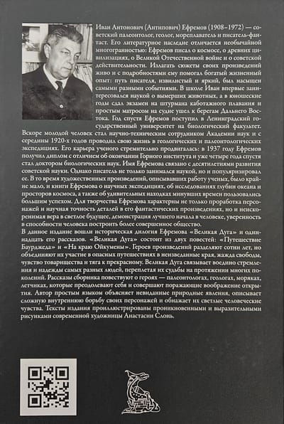 The publication includes Efremov's historical dilogy "The Great Arc" and eleven of his short stories. "The Great Arc" consists of two stories: "The Journey of Baurdzhed" and "On the Edge of the Oikumene". The heroes of the works are separated by hundreds of years, but they are united by their participation in dangerous journeys to unknown lands, a thirst for freedom, a sense of camaraderie and a craving for beauty. The Great Arc binds together the aspirations and hopes of very different people, intertwining their destinies over many generations.